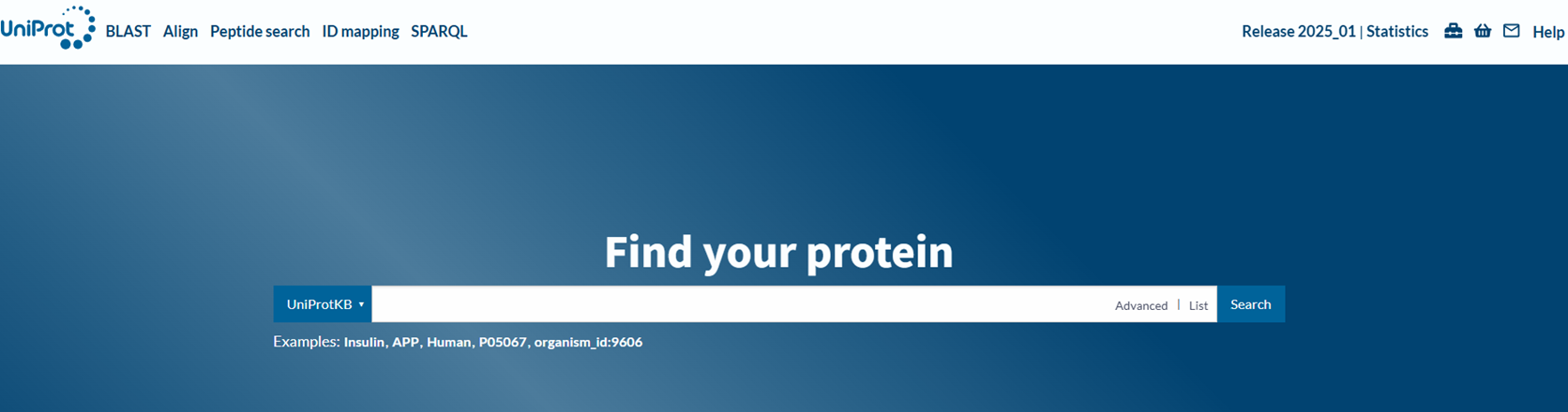 When you enter the UniProt website, you will land on its main page, which features a search bar. If you are looking for specific protein(s), you can directly search with this toolbar.